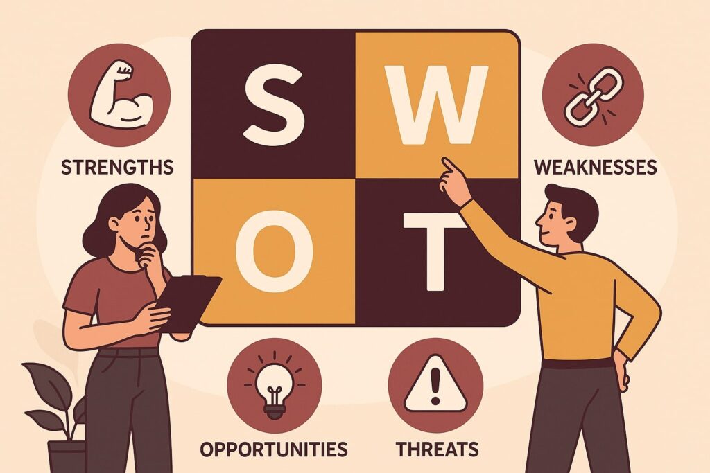 Voor ondernemers is dit essentieel. In plaats van te vertrouwen op gevoel of aannames, helpt een scherpe SWOT om prioriteiten te stellen, middelen te richten en koers te bepalen.